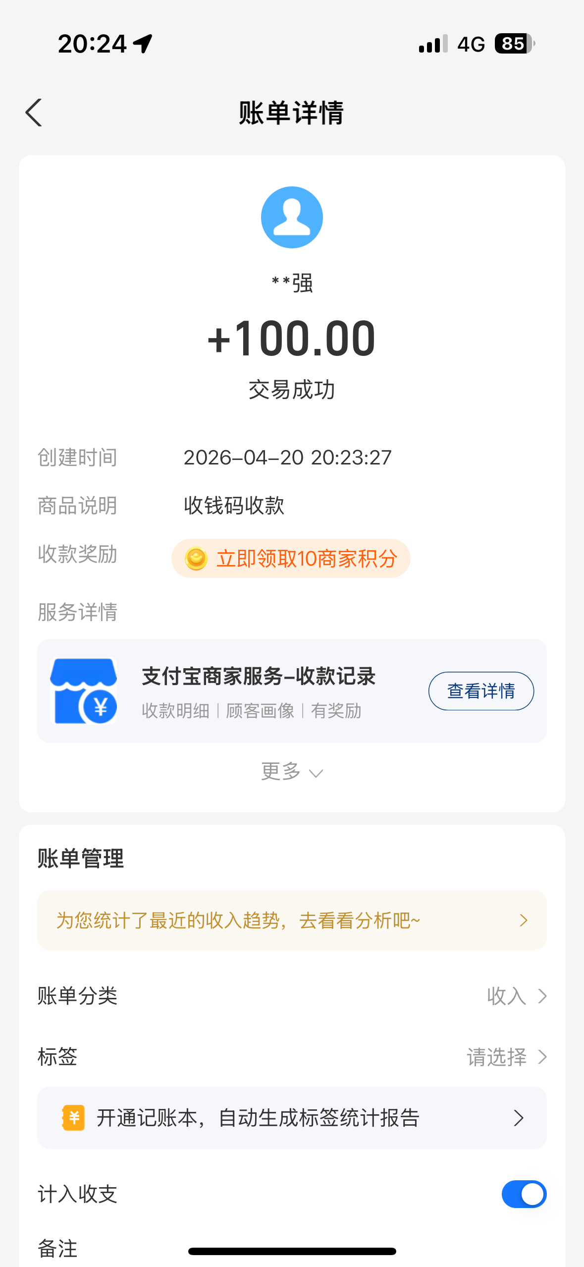 到余额